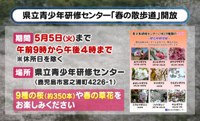1. 県立青少年研修センター「春の散歩道」開放 ほか