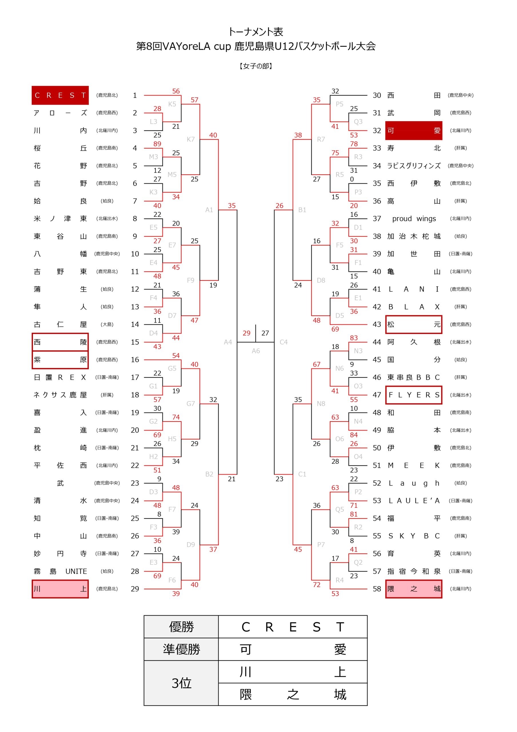 女子:CREST・可愛・川上・隈之城・西陵・紫原・FLYERS・松元です。
