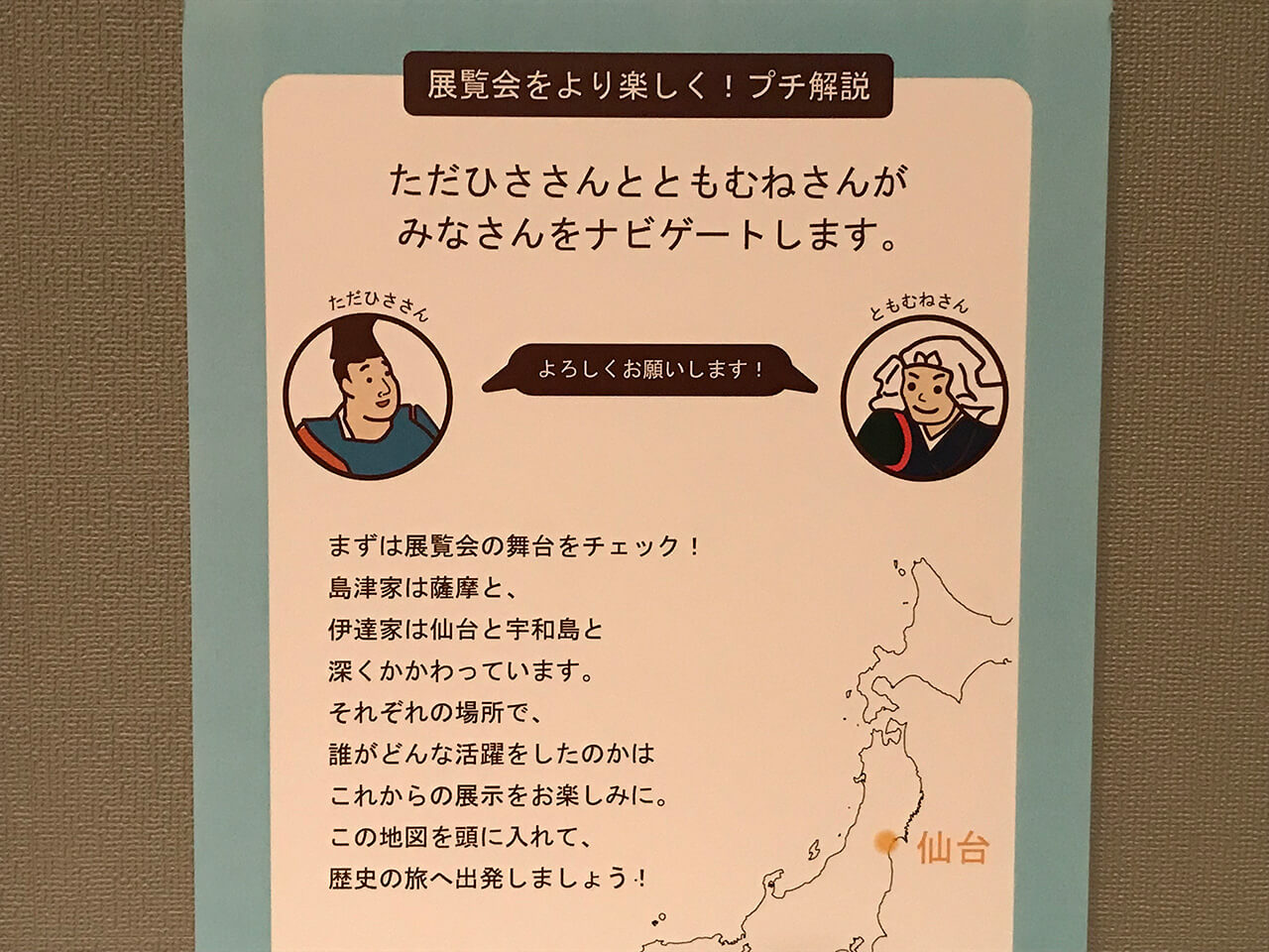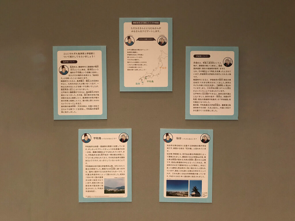 なお、今回の企画特別展では子どもたちにも分かりやすく歴史を学んでもらおうと、掲示の一部に、案内役の「ただひささん」と「ともむねさん」が隠れていますので、探してみて下さい。