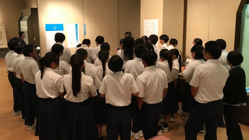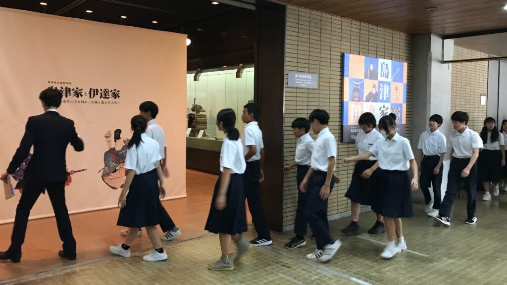 開場式には、鹿児島市立長田中学校の2年生も駆けつけ、南と北に分かれてはいるものの似たような歴史を辿り、幕末には積極的に藩の近代化と列強に対抗しようとした両家の歴史を学んでいました。