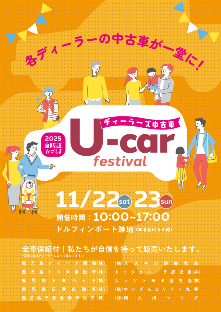 11月22日(土)・23日(日)にドルフィンポート跡地で新車ディーラー10社が参加する「2025自販連かごしまディーラーズ中古車フェスティバル」開催!!