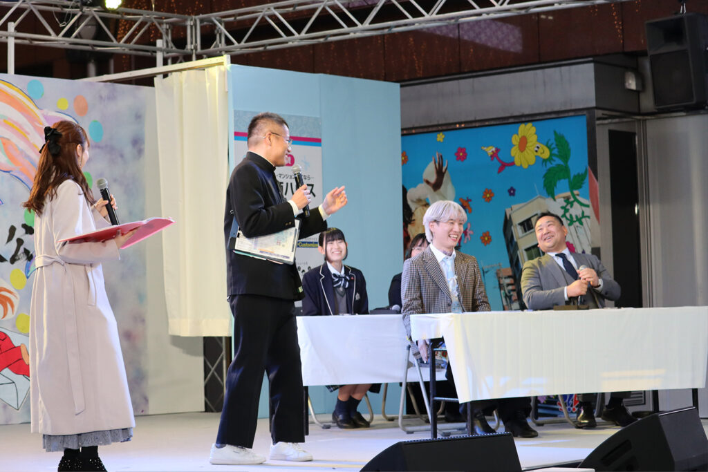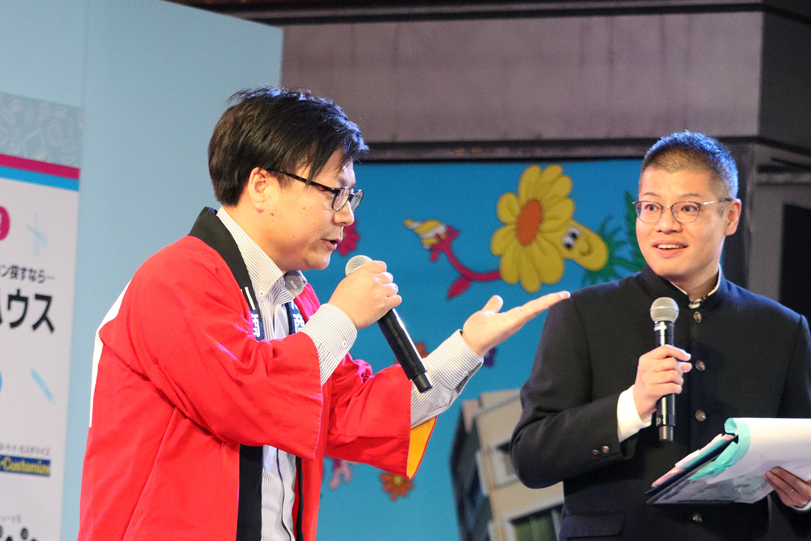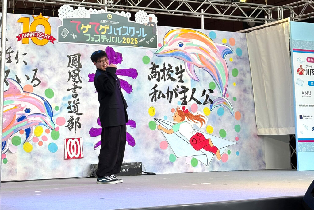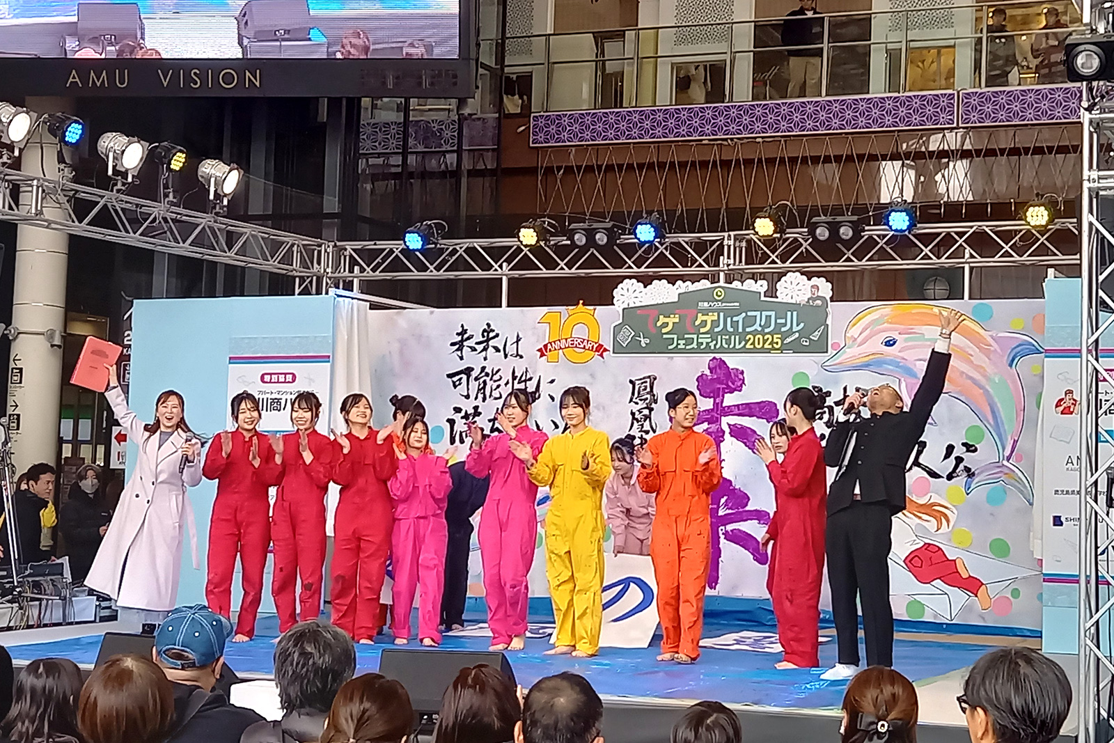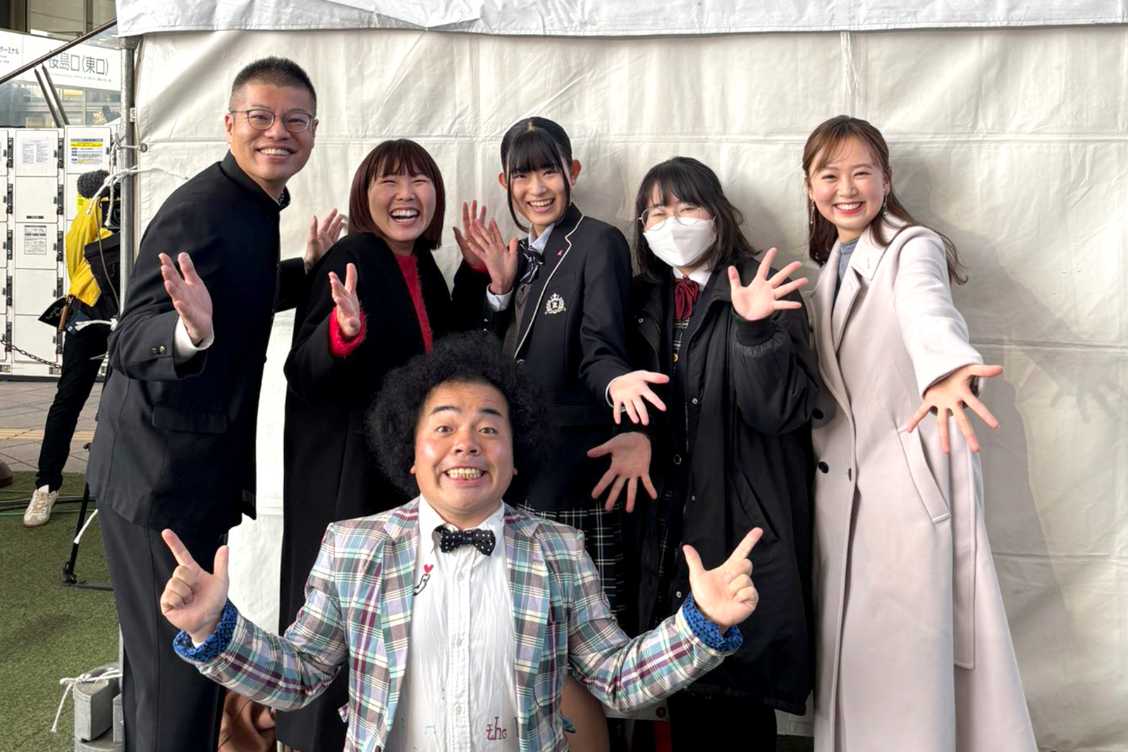 今年も鳳凰高校の書道パフォーマンスからスタート!最後に岩﨑アナウンサーと村田アナウンサーも参加!その後のオープニングにはゲストのしゅんしゅんさんも登場!