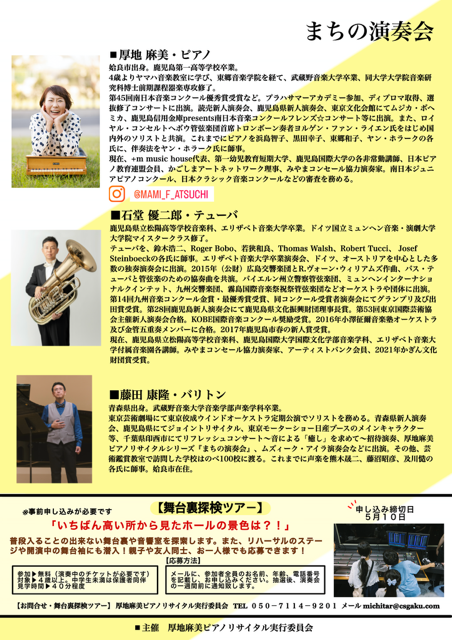 ℡ 050-7114-9201 厚地麻美ピアノリサイタル実行委員会 へお問い合わせいただくか