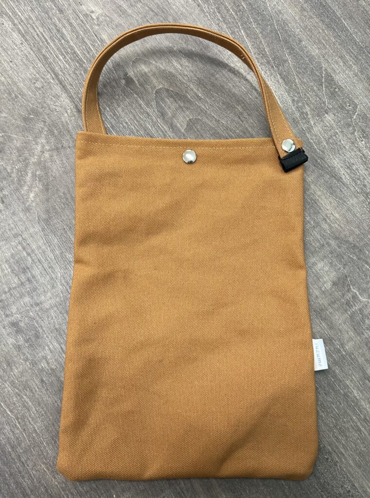 軽く糊がついた、弱撥水タイプの帆布製で、さりげない「suzume」のタグ付き。
