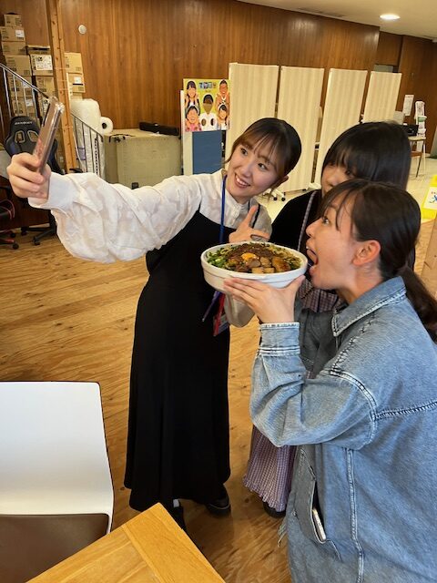 優華さんの夢である土鍋に入った1キロのまぜそばを展望スタジオに持ってきてくれました(^▽^)/