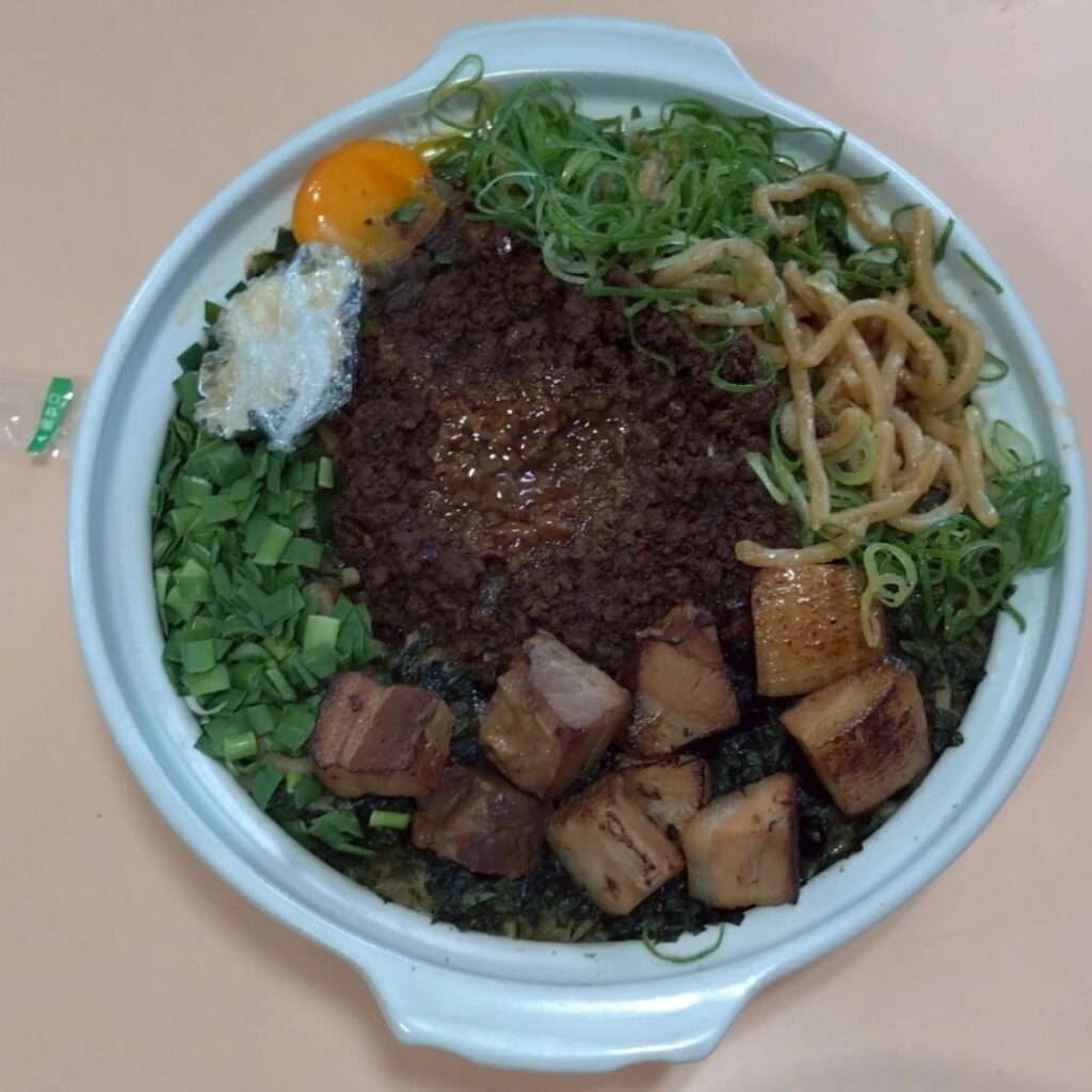 タレがたっぷり絡んだ麺に 卵 角煮 そぼろ。。。