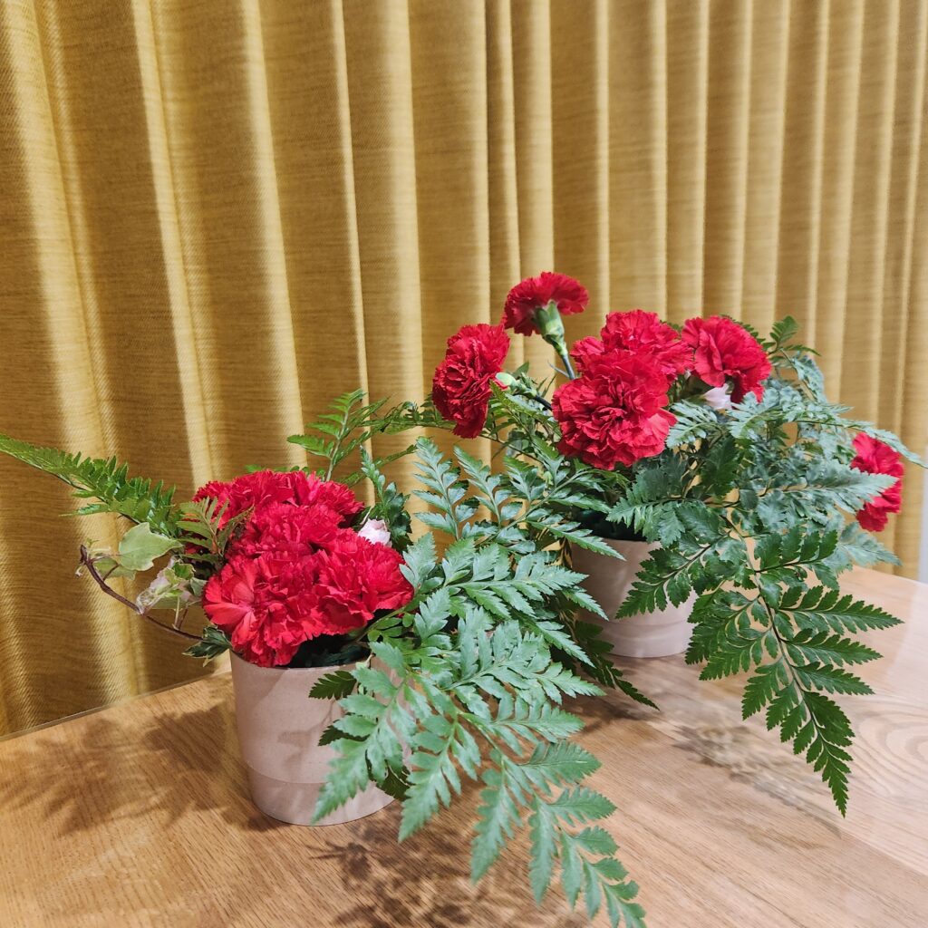 6件のお店に伺って、お花屋さんでは、なんと、フラワーアレンジメントもさせて頂いたそうで、お土産に持って帰ってきました!