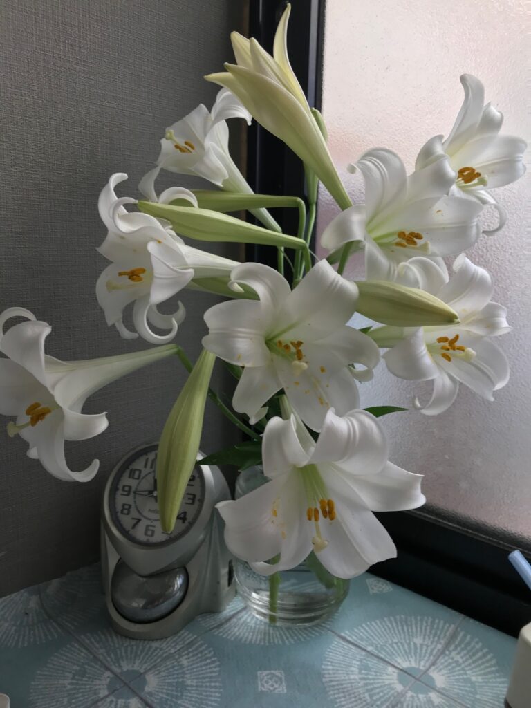今朝、真っ白な鉄砲ユリを飾って見ました