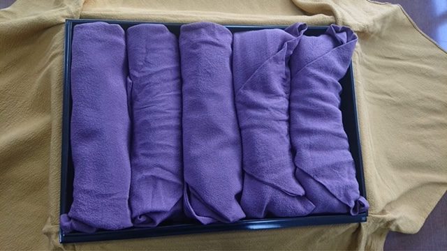 蓋を開けると風呂敷包みがあり、中には漆塗りの箱。