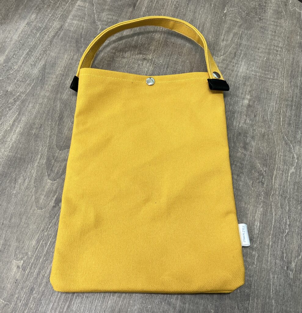 軽く糊がついた、弱撥水タイプの帆布製で、さりげない「suzume」のタグ付き。