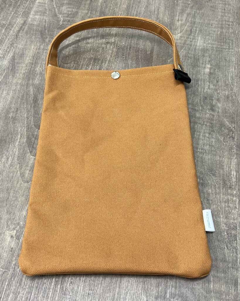 軽く糊がついた、弱撥水タイプの帆布製で、さりげない「suzume」のタグ付き。