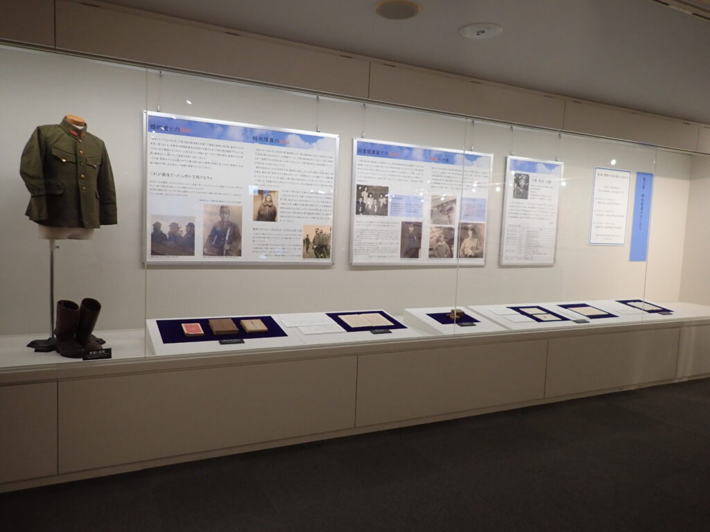 戦後80年夏の特別企画展では、10月31日までの会期を3期にわけ、3人の特攻隊員の入隊から出撃までを1期ごとに1人にスポットをあて紹介されています。8月は、学徒出身の特攻隊員の穴澤 利夫 大尉、9月は、陸軍士官学校出身の特攻隊長の池田 元威 大尉、10月は、幹部候補生出身の久冨 基作 大尉、遺書だけが紹介されるのではなく、所蔵資料から3人の生きた証・人生が展示されています。戦争の中で過ごし、特攻隊員となり飛び立っていった思いに寄り添ってご覧いただきたいです。