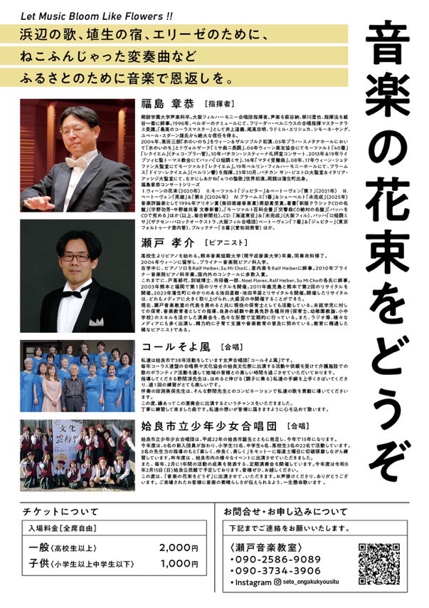 「音楽の花束をどうぞ」は蒲生ゆかりの音楽家たちが、故郷に音楽で恩返しをしたいと企画している演奏会です。