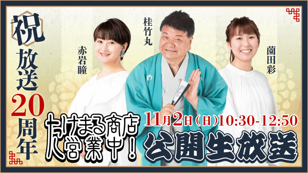 『たけまる商店営業中!』放送20周年!感謝の公開生放送11/2(日)開催。