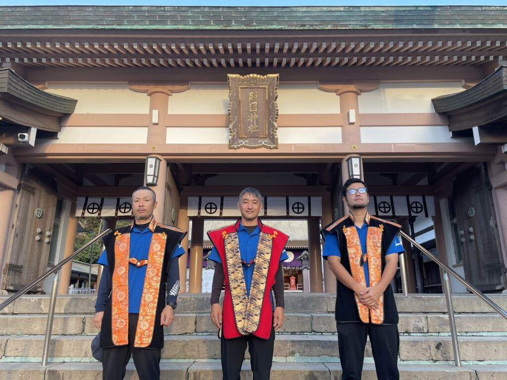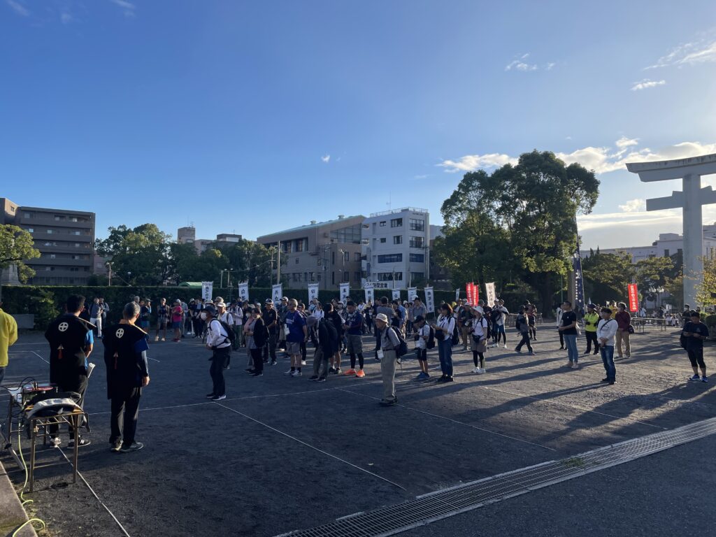 朝7時から、照国神社で受付をし7時30分に陣羽織を着た青年部の皆さんと声高らかに出発式を行い、ゴールの徳重神社まで歩きます。4つの関所が設けられており、スタンプを受けてゴールとなります。ゴールの徳重神社では、完歩の証として紅白の伊集院饅頭が渡されるそうです。