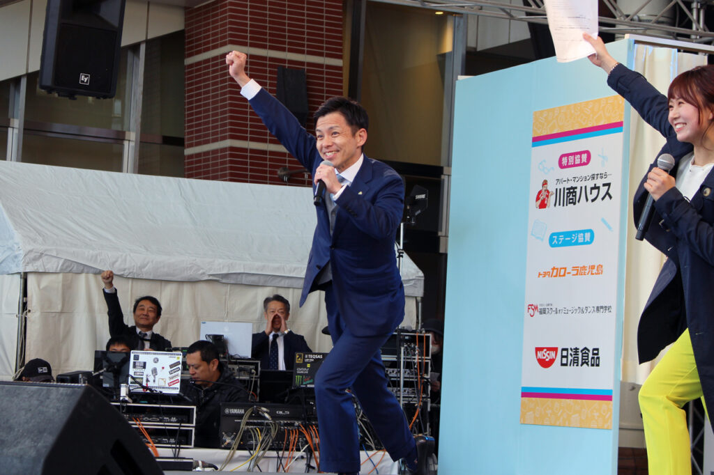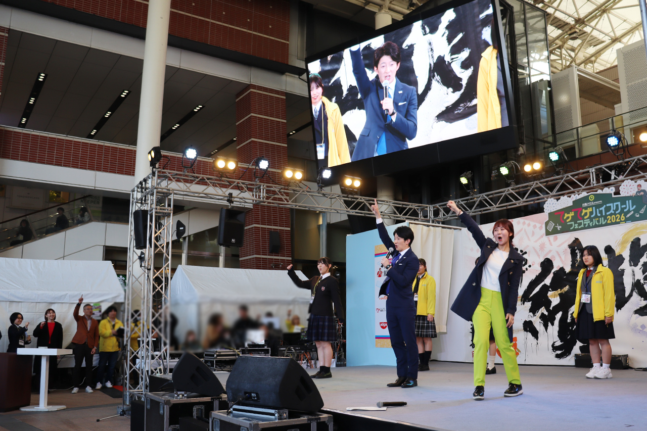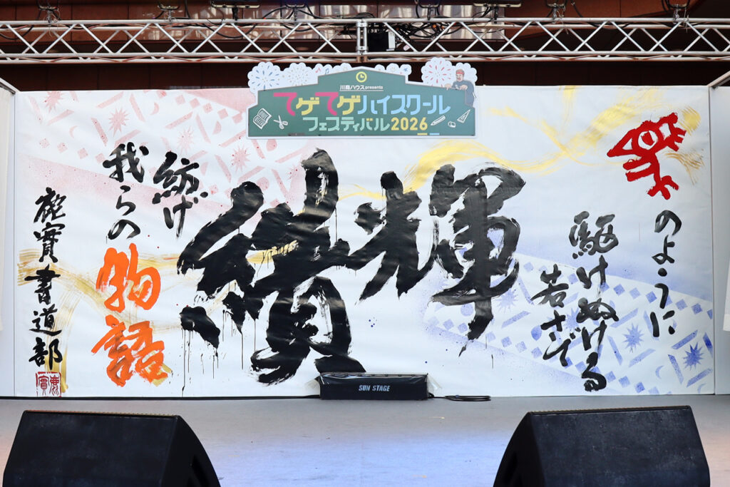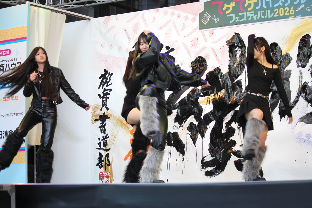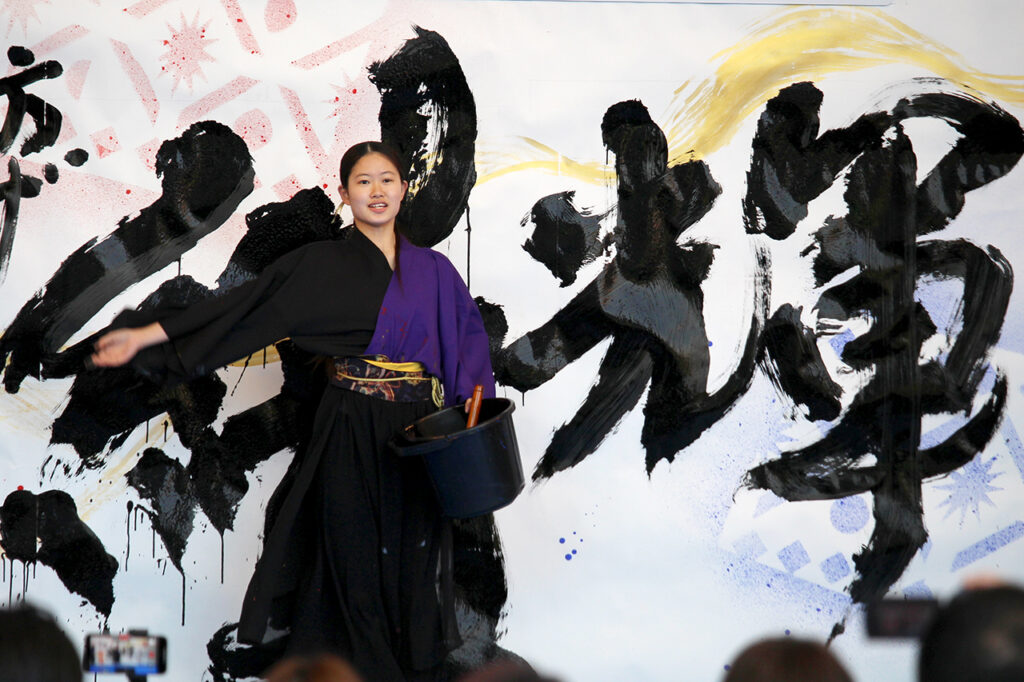 鹿児島実業高校の書道パフォーマンスからスタート!