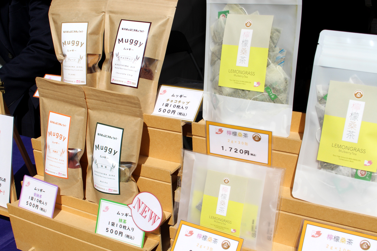 自慢の一品の販売や体験ができるブースが並びます。午前中で売り切れるものもあり、大好評でした。