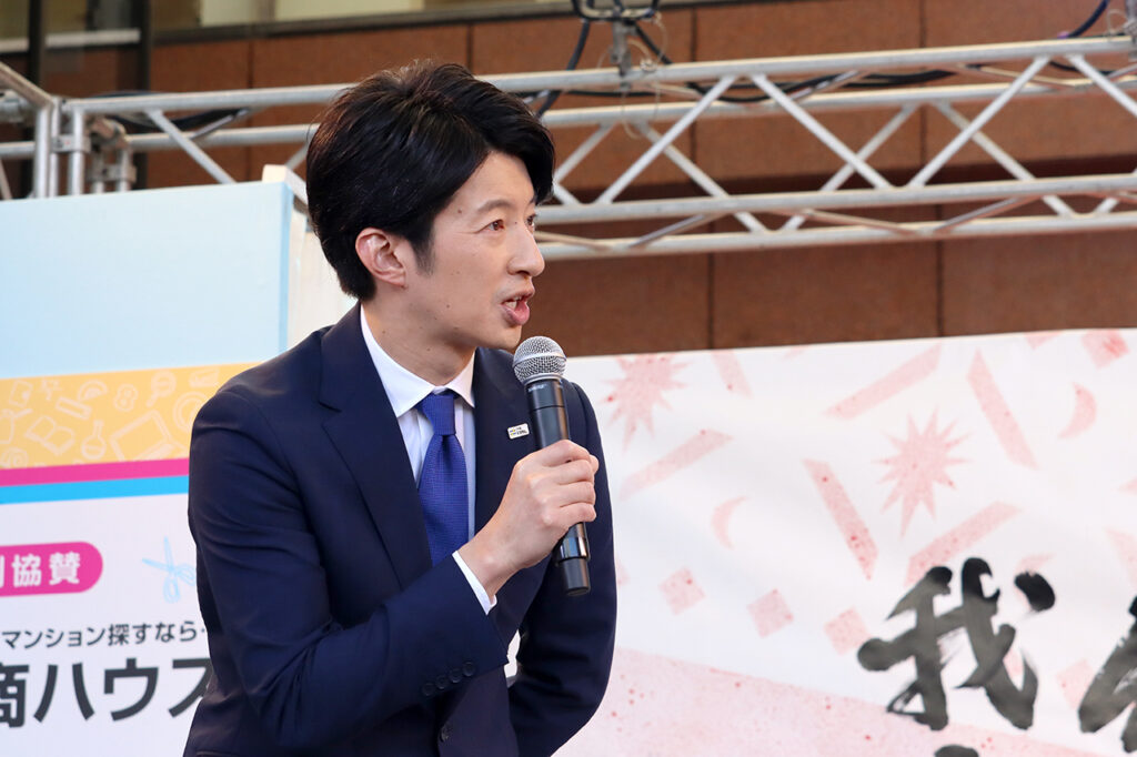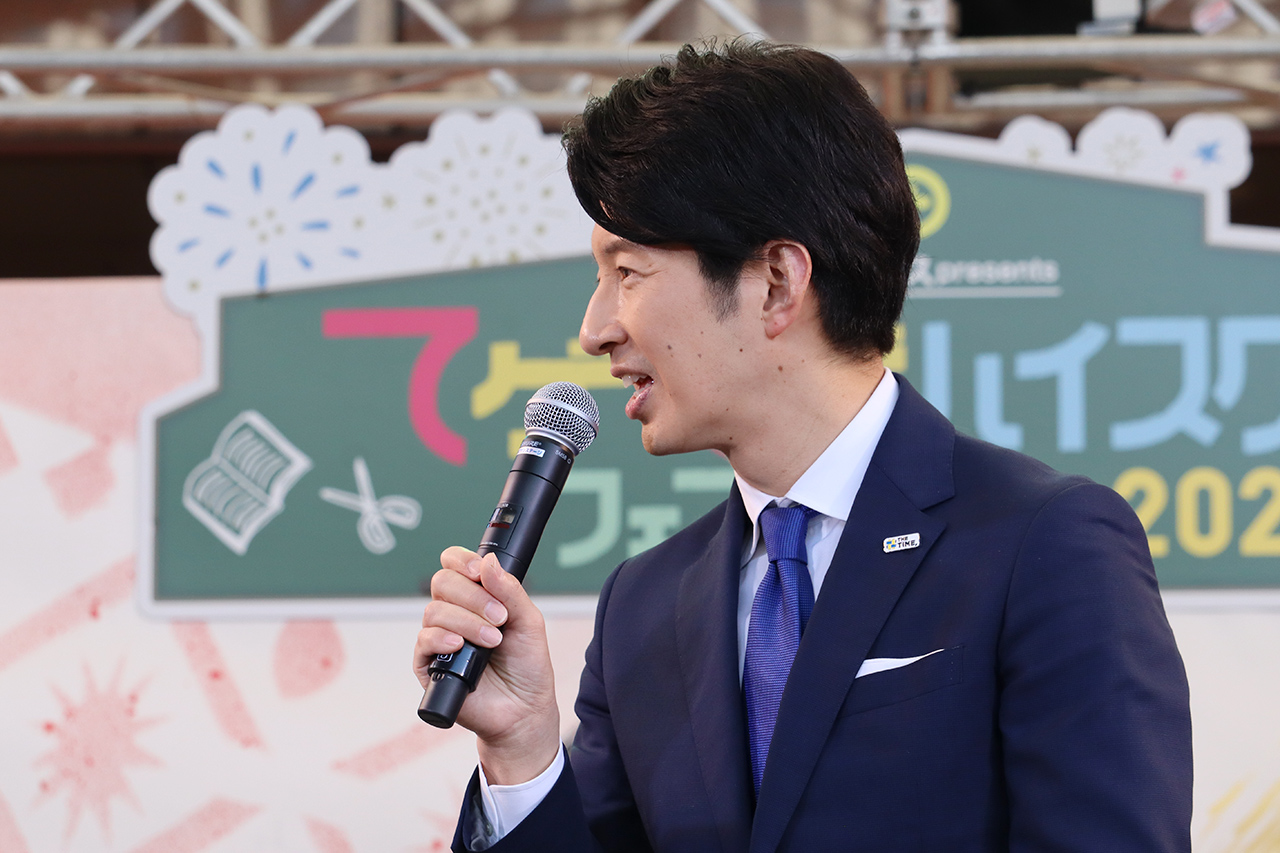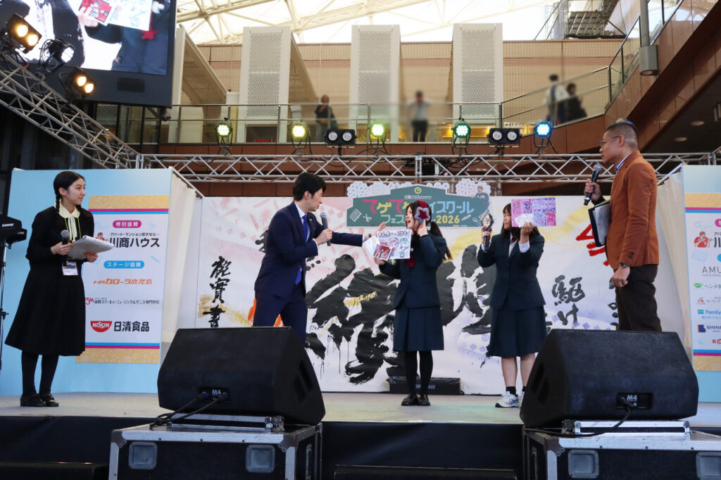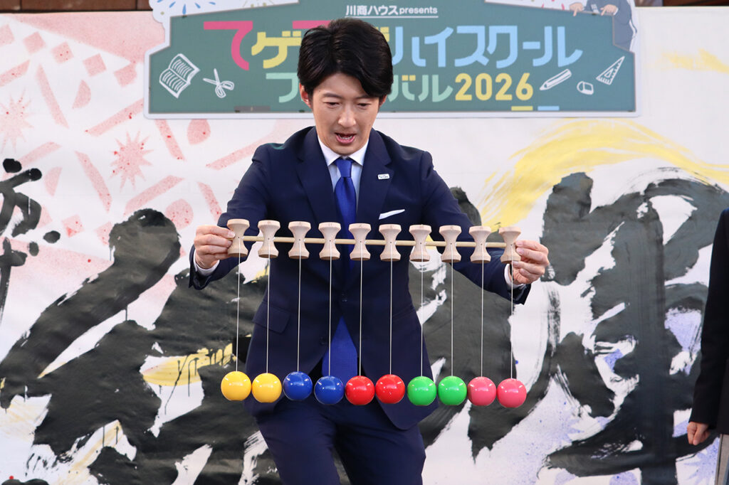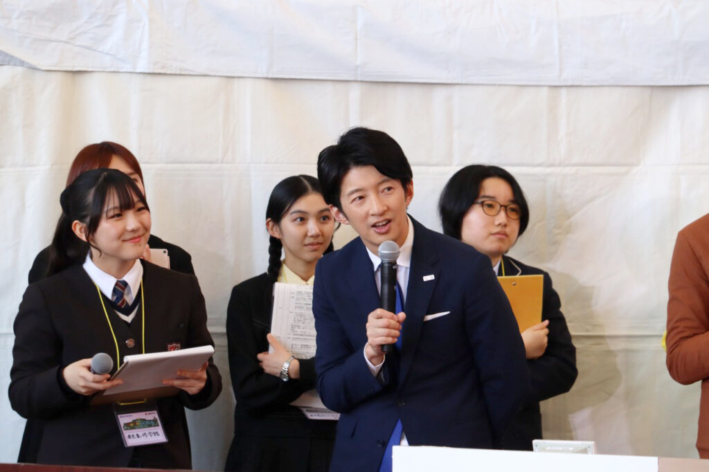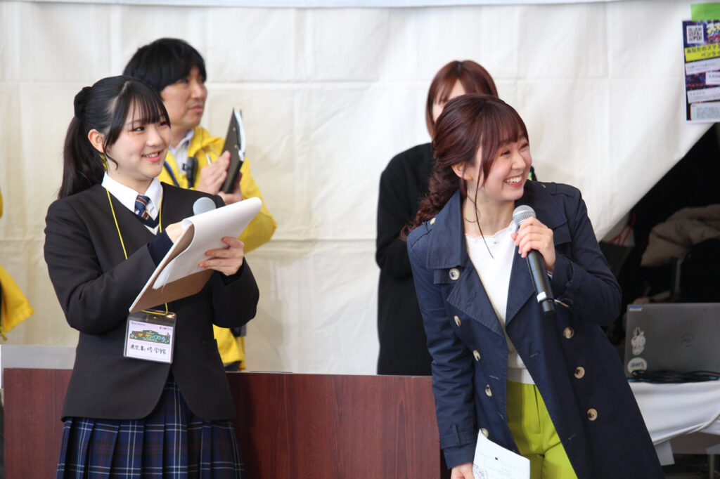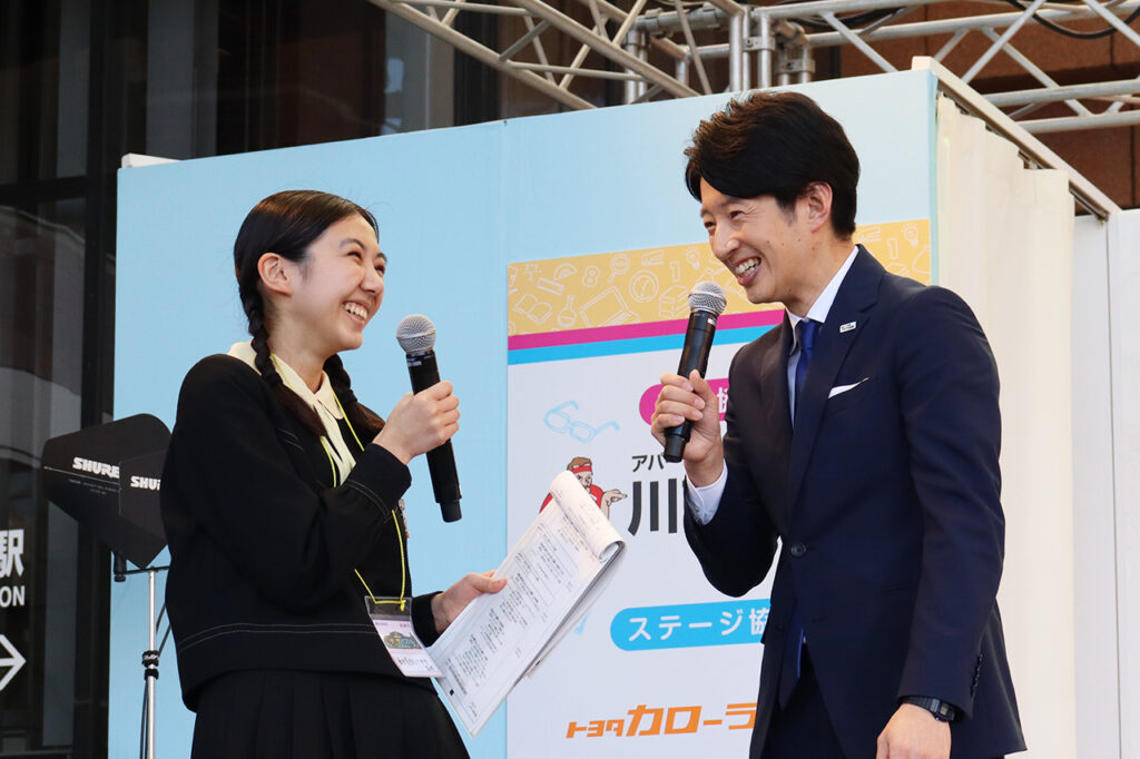 ブース紹介で杉山真也アナウンサーが学生にインタビュー!けん玉にも挑戦!