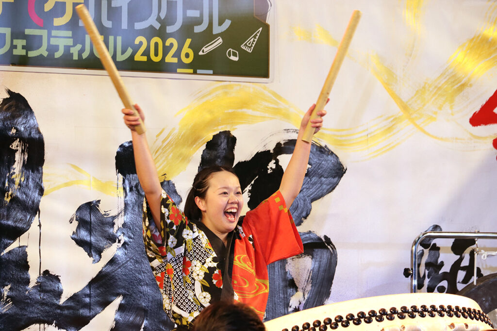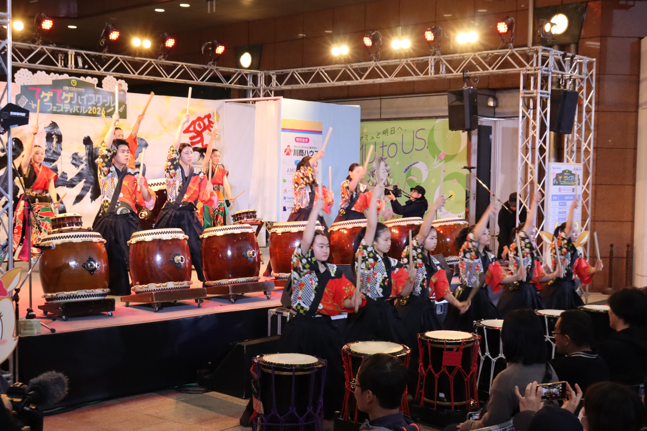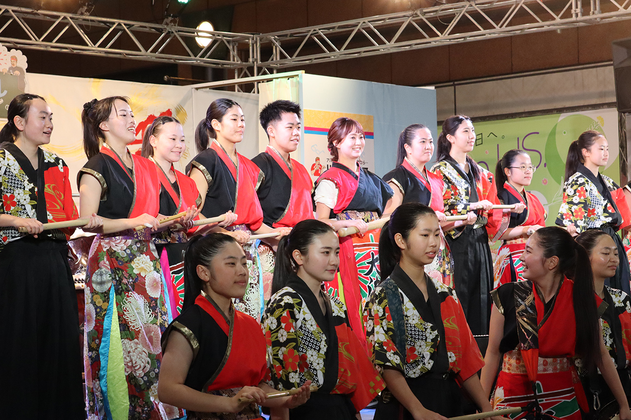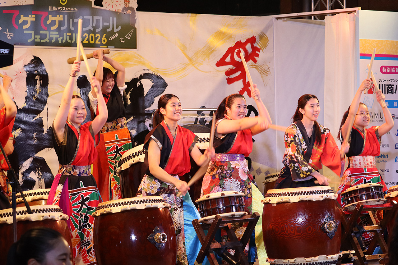 鹿児島高校のみなさんの迫力のある和太鼓のあと、村田アナも参加させていただきました!
