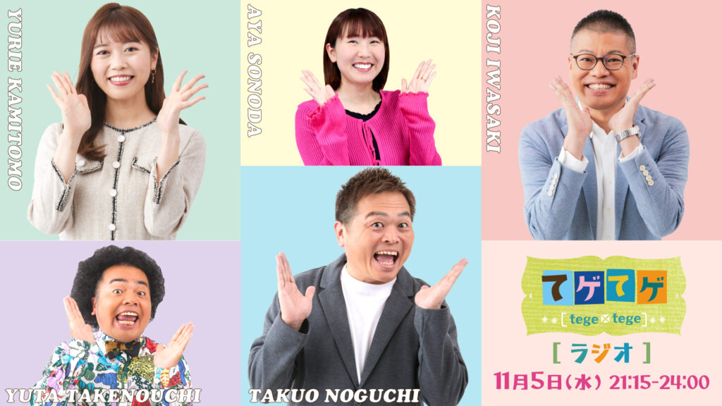 11月5日(水)21:15~「 てゲてゲラジオ 」