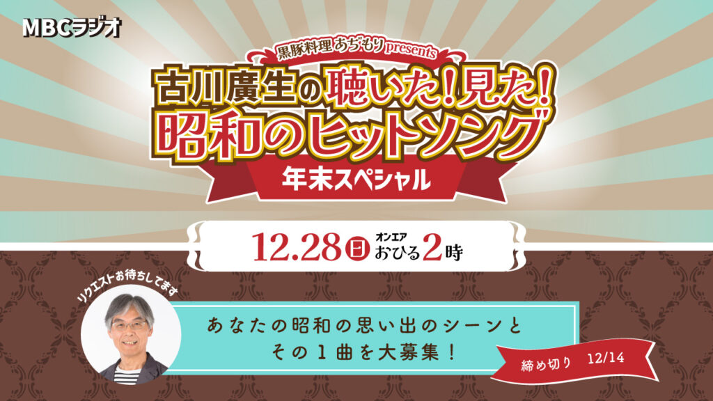 【リクエスト曲 募集】黒豚料理あぢもりpresents 古川廣生の聴いた!見た!昭和のヒットソング 年末スペシャル
