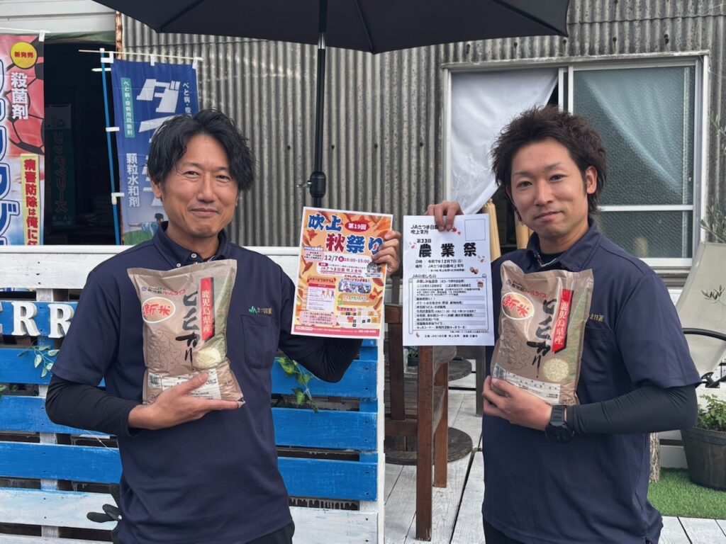 ご出演は、吹上秋祭り実行委員会 副委員長の東久保 健さんとJAさつま日置の宮脇 駿さんでした。