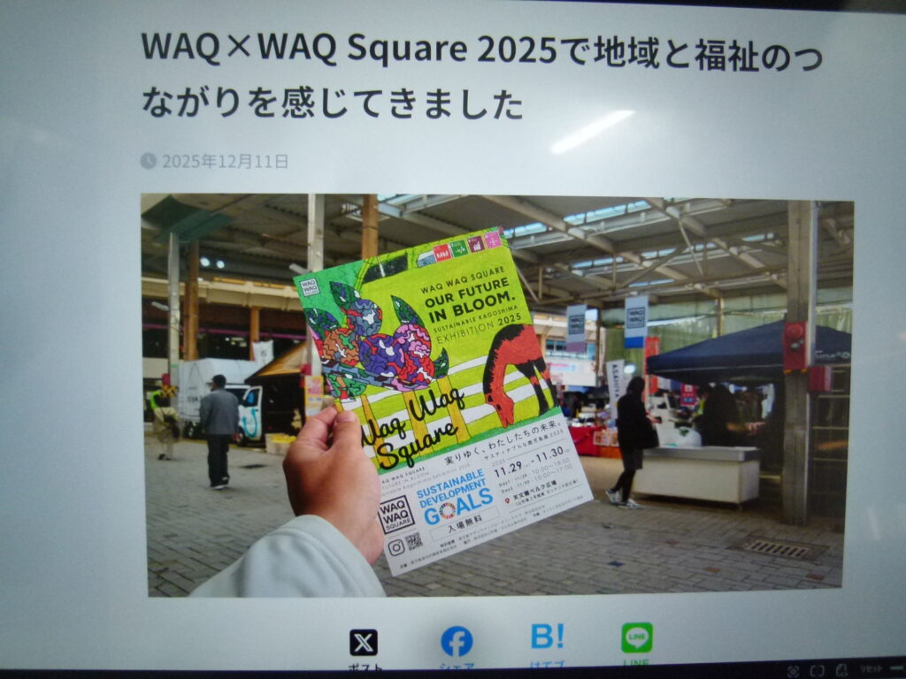 12月のカゴシマガジンでは、WAQ×WAQ Square2025で地域と福祉のつながりを感じてきましたの記事では、20の事業所の出店の中から10店舗の紹介が載っています。県内各地から、それぞれの事業所独自のお勧めの美味しい物や可愛いい小物・バックなど紹介されています。各事業所のInstagramなどの情報も詳しく載っているので次回のイベント情報もわかるようです。お出かけ情報の参考にもなりそうです。是非、カゴシマガジンでチェックなさって下さい。