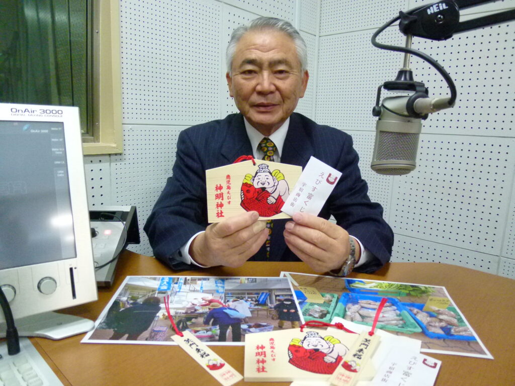 プレゼントは、宇宿商店街振興組合から宇宿・神明神社の恵比寿さんの絵馬と十日恵比寿のえびす