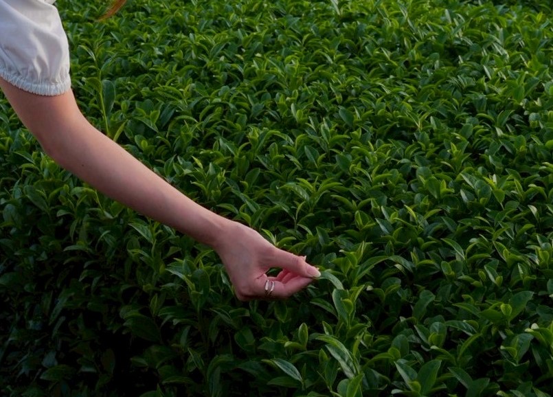 最大限の香りと色味を引き出すために畑に覆いをかぶせ、日光を遮って葉を育てます。光が少ない分、葉はゆっくりと旨みを溜め込み、鮮やかな緑へと育っていきます。