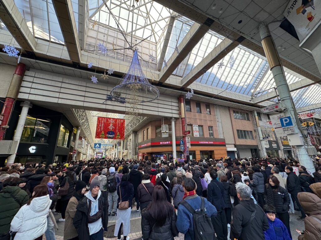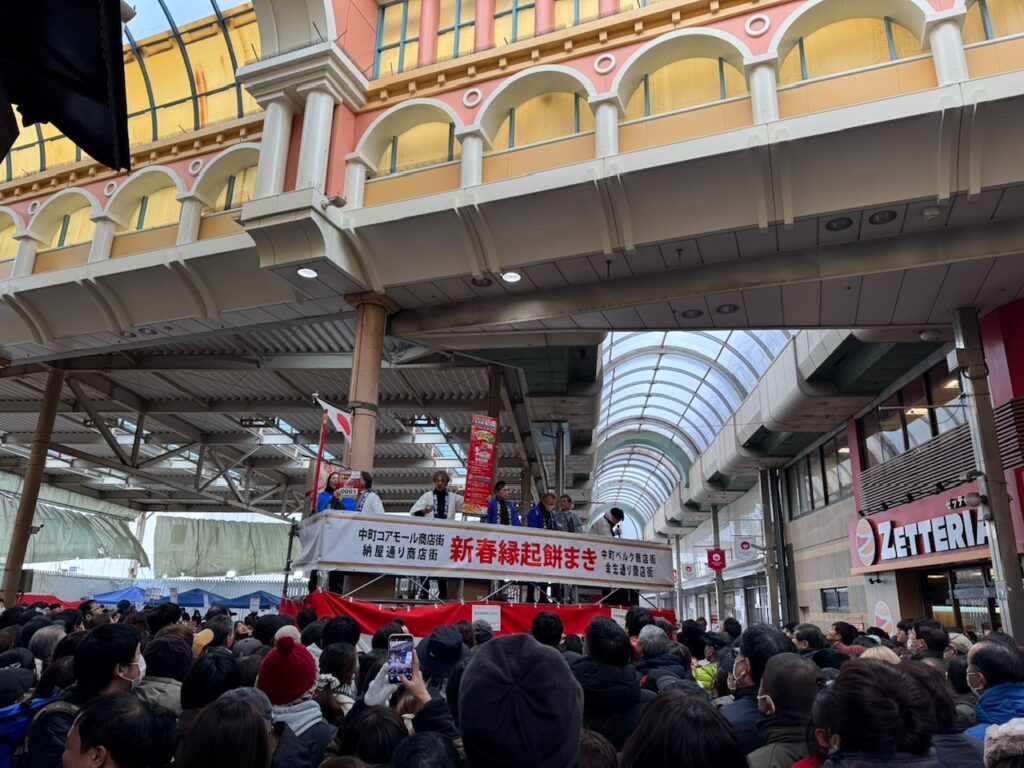 (写真は、2026年天文館の初商いの一コマです↑餅まきの様子・抽選会の様子↓)