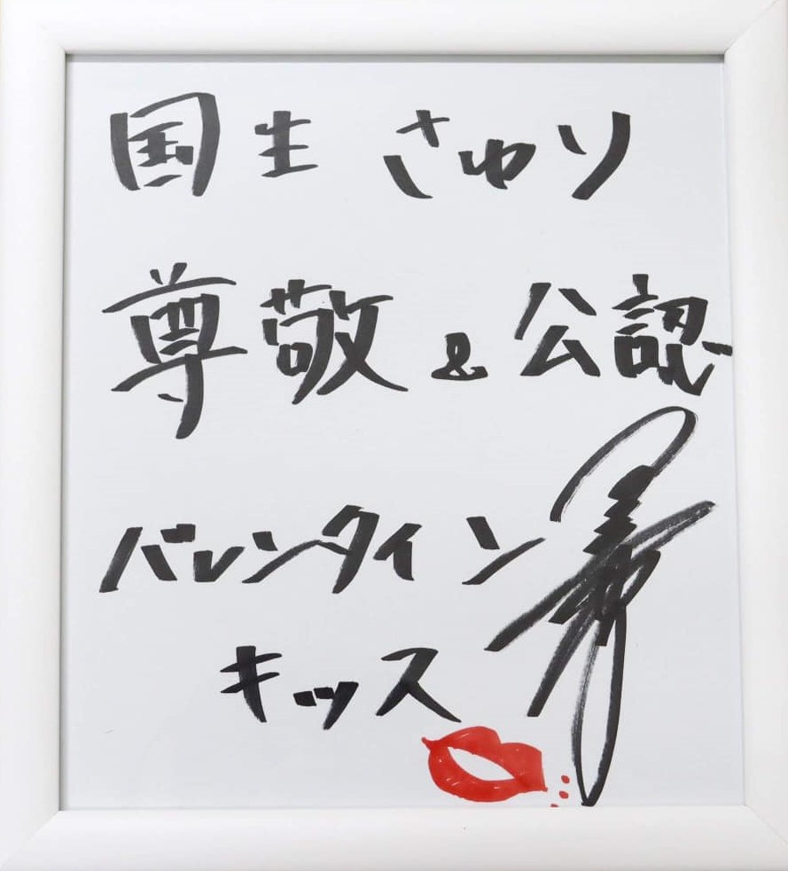 国生さゆりさんから「国生さゆり 尊敬&公認 バレンタイン・キッス💋」の色紙を頂戴しました。本家公認カバー歌手でございます。