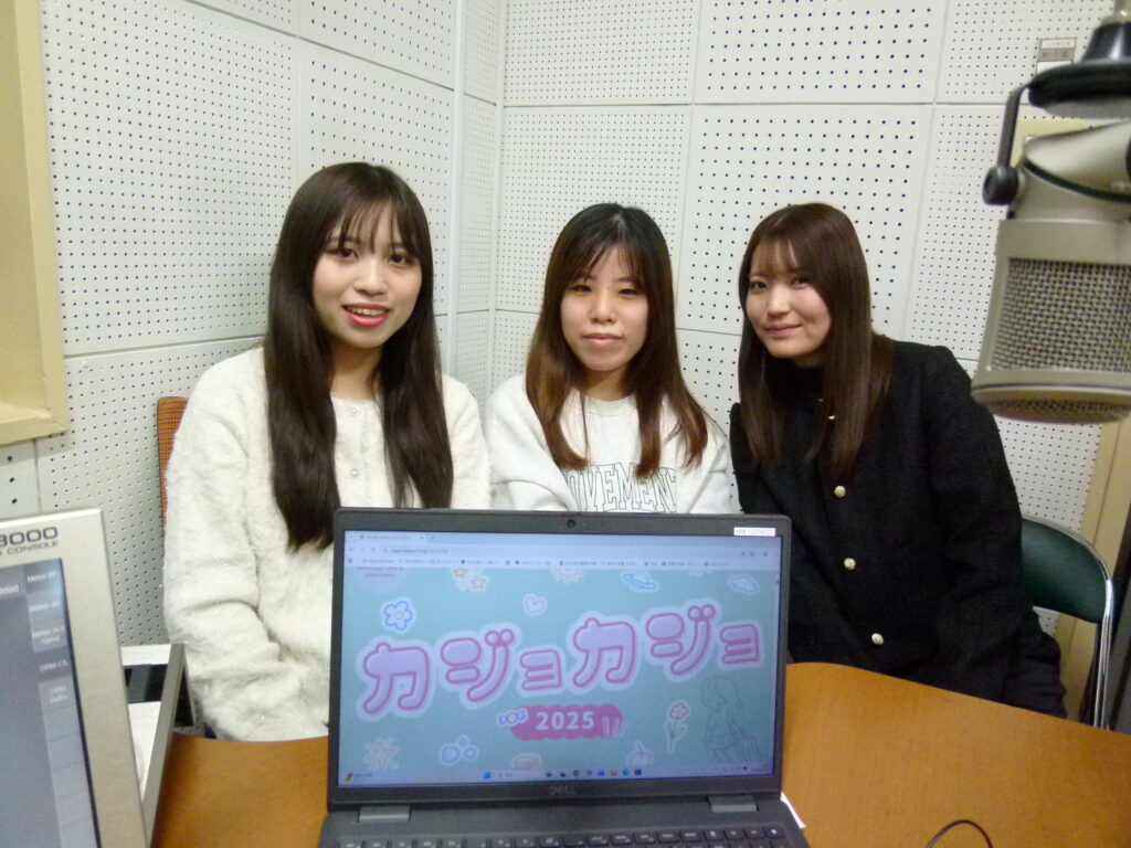 ご出演は、鹿児島女子短期大学教養学科2年の吉松 美香さん・野元 綾花さん・濵田 綾音さんでした。