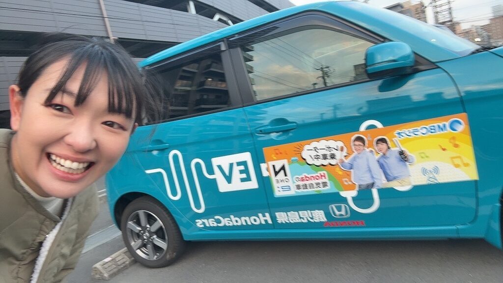 ホンダの電気自動車「N-ONE e:」(エヌワンイー)に乗って中継に伺いましたよ~🚙