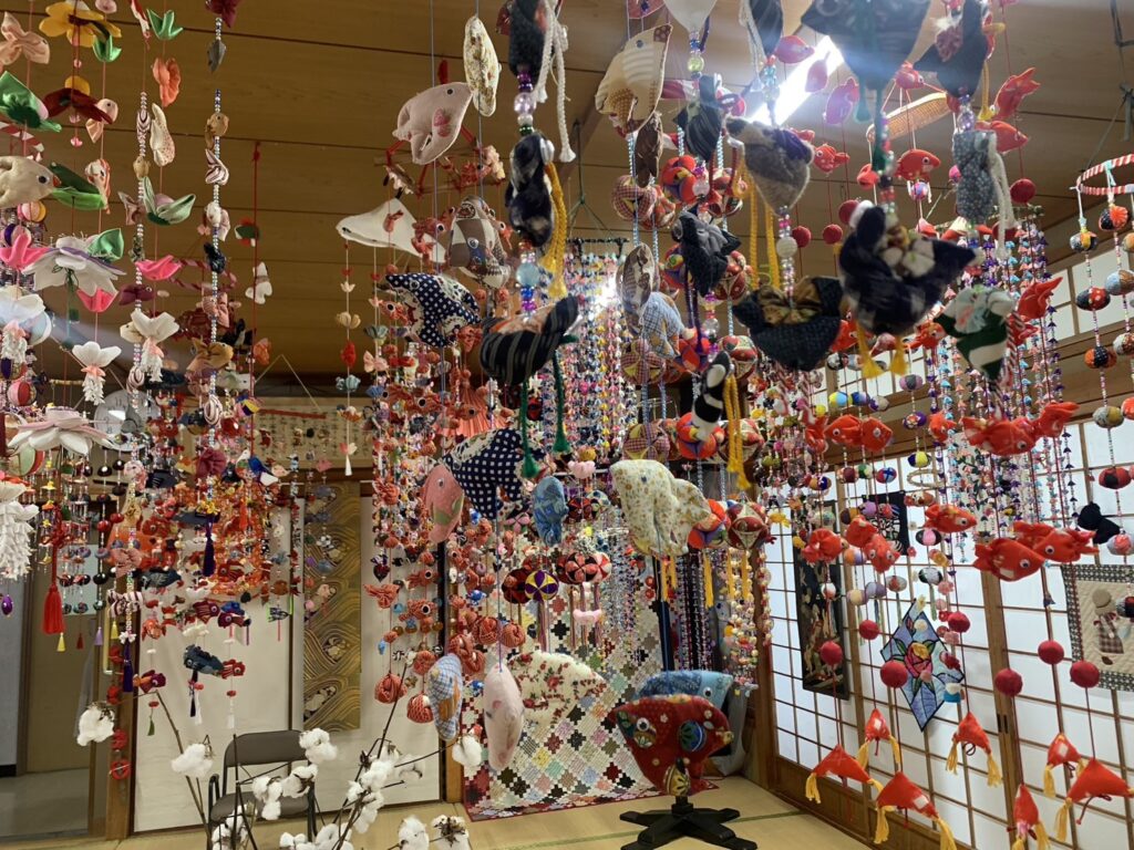 プレゼントは、薩摩川内市ひな祭りスタンプラリー実行委員会から手作りのつるし飾り(さげもん)