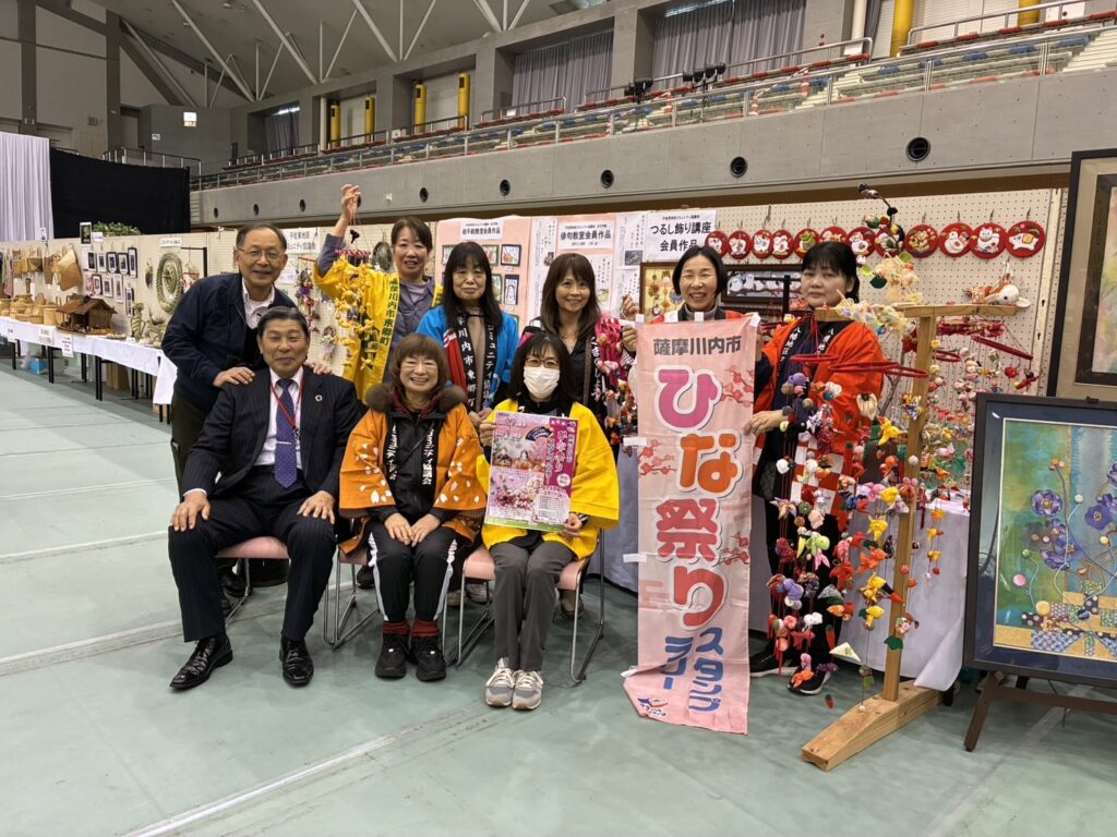 今回で4回目となる「薩摩川内市ひな祭りスタンプラリー」は、鳥丸地区が14年前から育英地区が8年ほど前から「つるし飾り展」を行っていたそうで、その中で育英の主事さんが伊佐市の商店街で行われていたスタンプラリーをみて、薩摩川内市のコミュニティー協議会でもやってみたいと声をかけ1回目は6会場でスタートしたそうです。