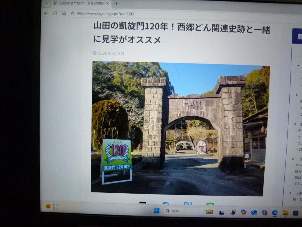 カゴシマガジンライターであり郷土史家である、下豊留さんは、来年(2027年)の西郷隆盛生誕200年・没後150年、西南戦争150年の節目の年であることから来年に向けて、西郷隆盛に関係する場所を詳しく紹介していこうと考えているそうです。2月の記事では、世界遺産「寺山炭窯跡」近くにある「南洲翁開墾の地の碑」や、姶良市山田の凱旋門近くにある「西南戦争招魂碑」が紹介されています。
