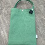 軽く糊がついた、弱撥水タイプの帆布製でさりげない「suzume」のタグ付き。