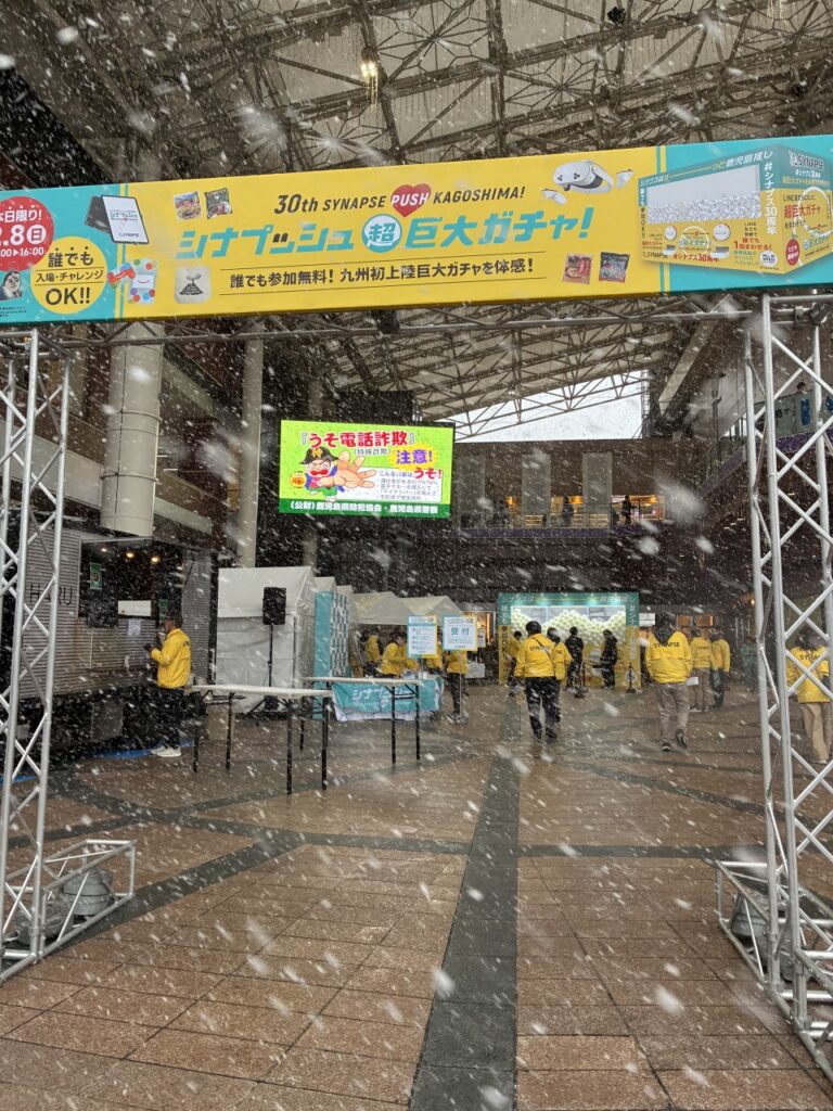 1995年に南九州初の商用インターネットサービスプロバイダとしてスタートしたシナプスが30周年を迎えました。創業者が当時まだ各市町村にインターネットのアクセスポイントがなかった時期に作ろうということで会社がスタートしました。30年にわたって事業を進めてこられたことは、シナプス利用の皆さまはもちろん、鹿児島の皆さまに支えられてきたお陰です。今回、感謝の気持ちを込めて、2月8日の鹿児島市のアミュ広場でのガラポン抽選会を皮切りに、加世田・奄美・鹿屋・薩摩川内と各地で抽選会を開催されました。先日開催された鹿児島マラソン会場でも抽選会を実施したそうです。