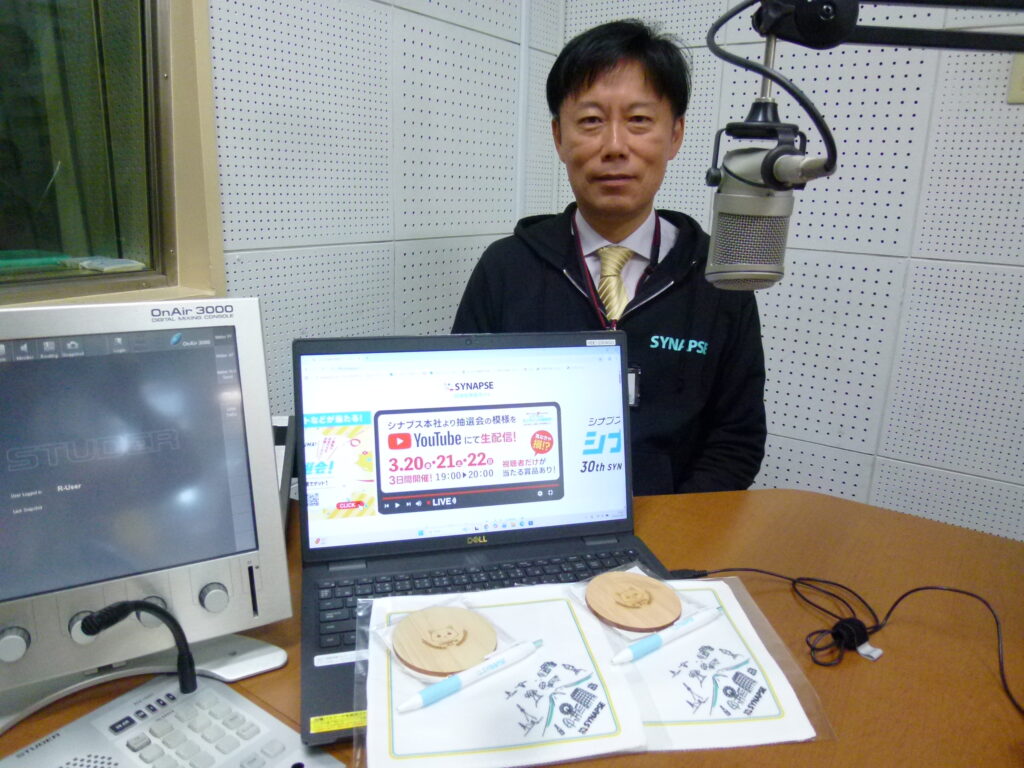 そして、3月20日金曜日春分の日・21日土曜日・22日日曜日に、YouTubeの生配信でエントリーした皆さんが参加できる「シナプス オンライン大抽選会」を開催します。この抽選会は、3月17日までにメールアドレス等を「シナプス30周年」特設サイトにあるエントリーホームから入力してエントリーすると参加することが出来るそうです。参加は、県内の方なら何方でも参加できるようです。