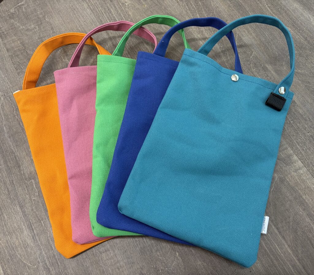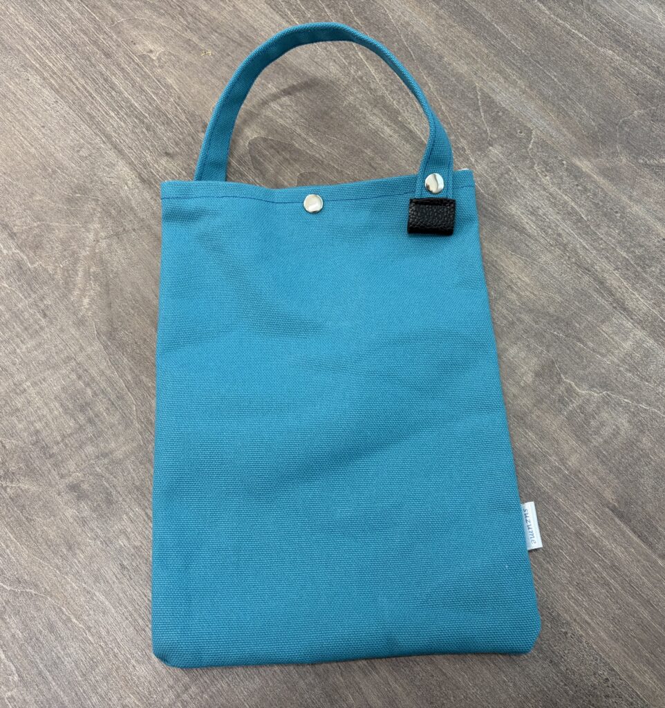 軽く糊がついた、弱撥水タイプの帆布製で、さりげない「suzume」のタグ付き。