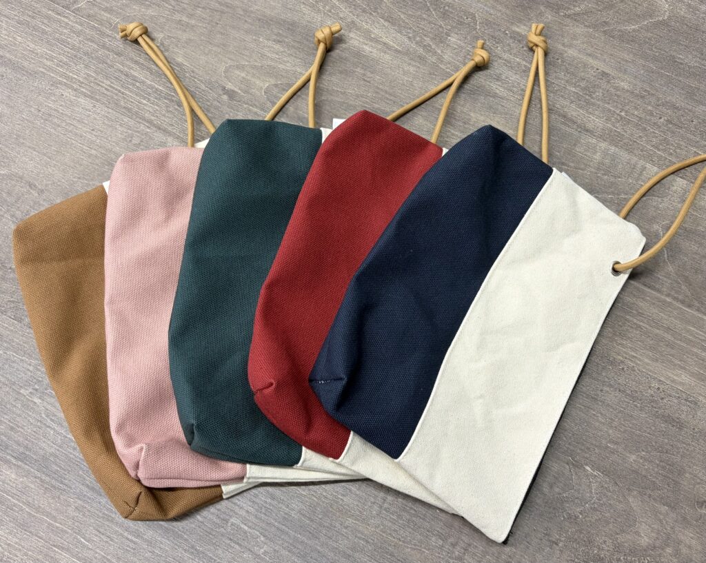 軽く糊がついた、弱撥水タイプの帆布製でさりげない「suzume」のタグ付き。