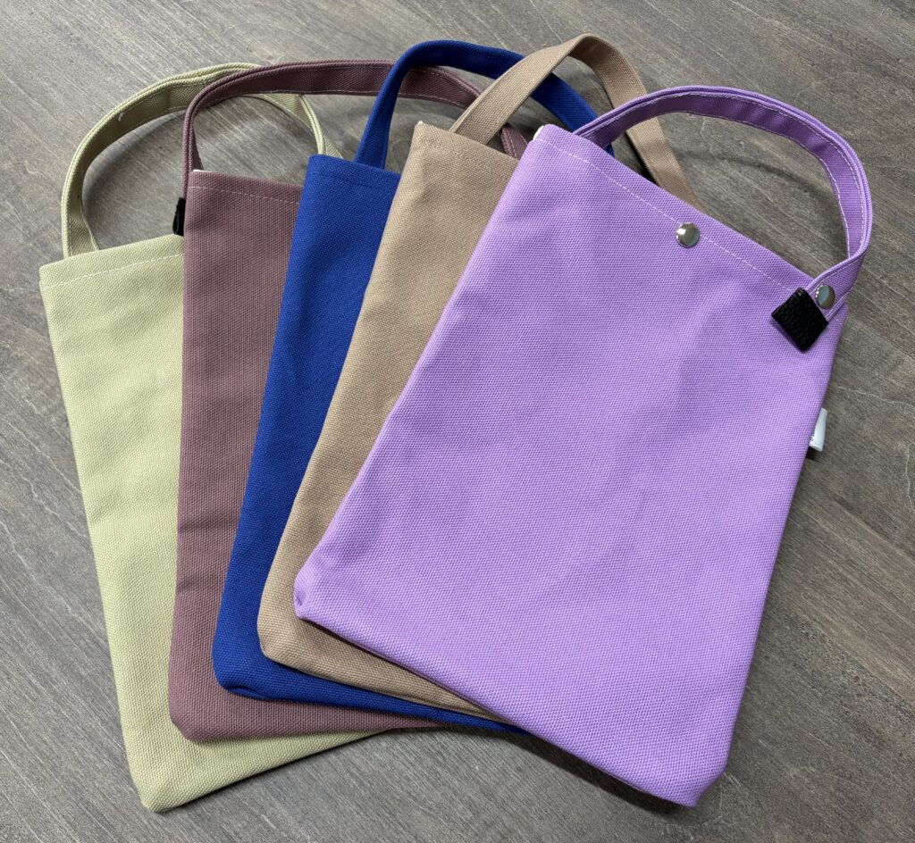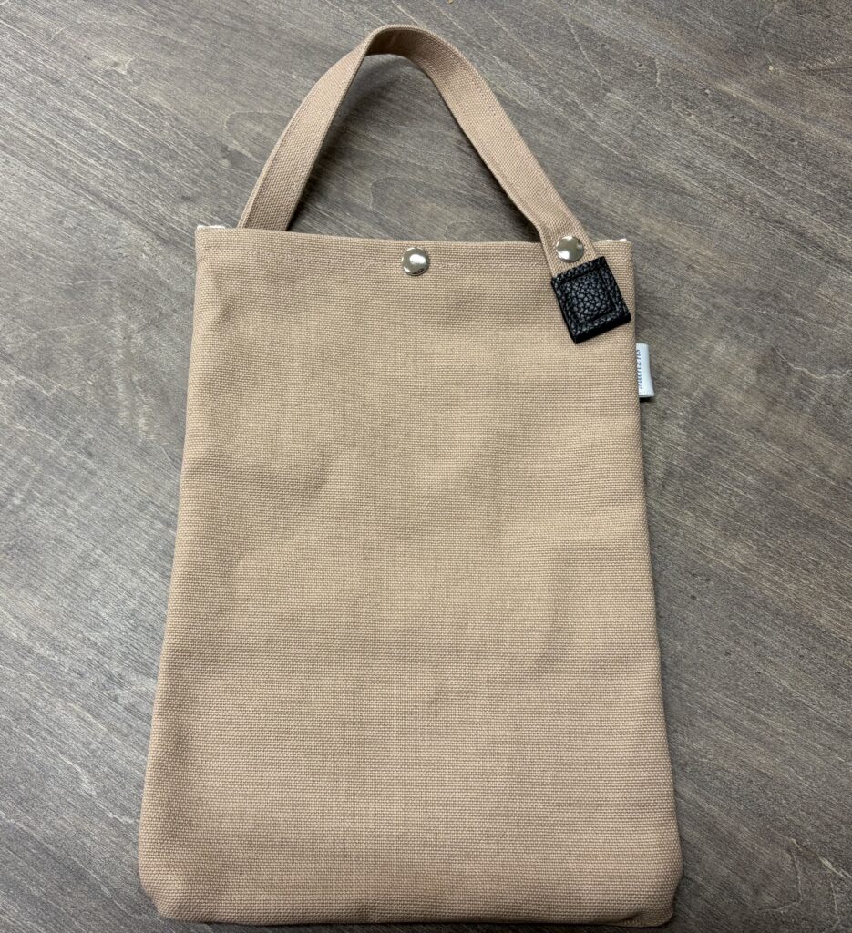 軽く糊がついた、弱撥水タイプの帆布製で、さりげない「suzume」のタグ付き。