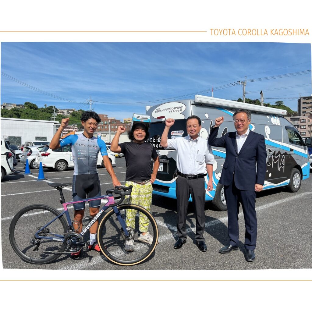 今回は、トヨタカローラ鹿児島 鹿屋店・西別府店長と、自転車競技・シエルブルー鹿屋で選手兼監督の伊藤雅和選手にお話を伺います。