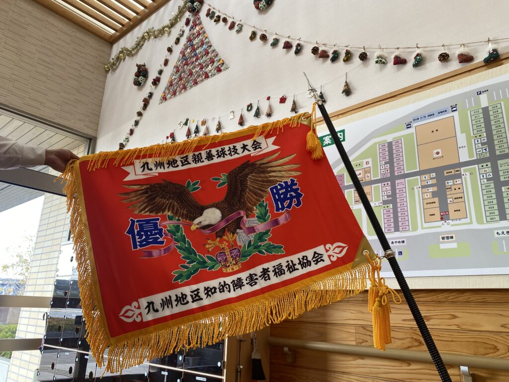 エントランスにはティーボールという競技の九州大会で優勝した際の優勝旗が飾られていました!