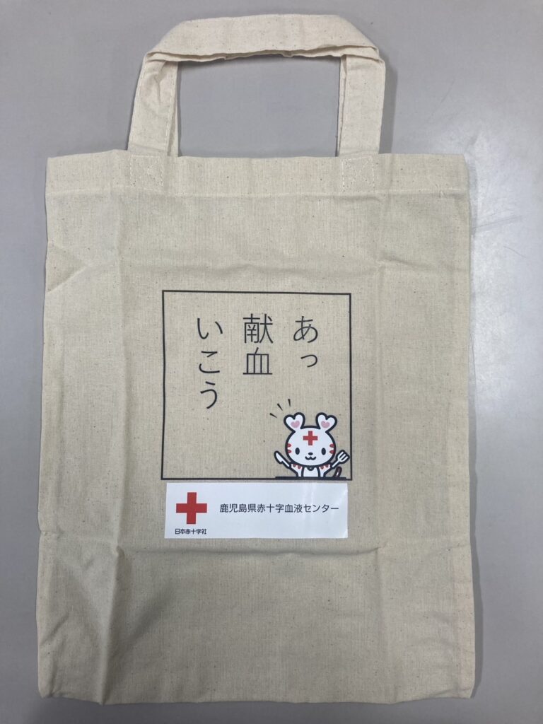 「あっ献血行こう」のトートバッグをお送りします。