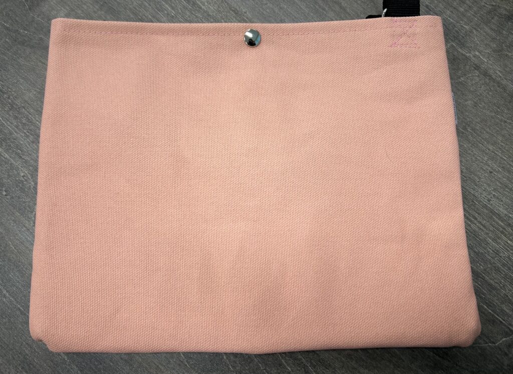 上はボタン留めで、サッと物が出し入れしやすい作りでさりげない「Suzume」のタグ付き。