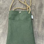 軽く糊がついた弱撥水タイプの帆布製サコッシュは大きいサイズで、内側には便利なポケット付。