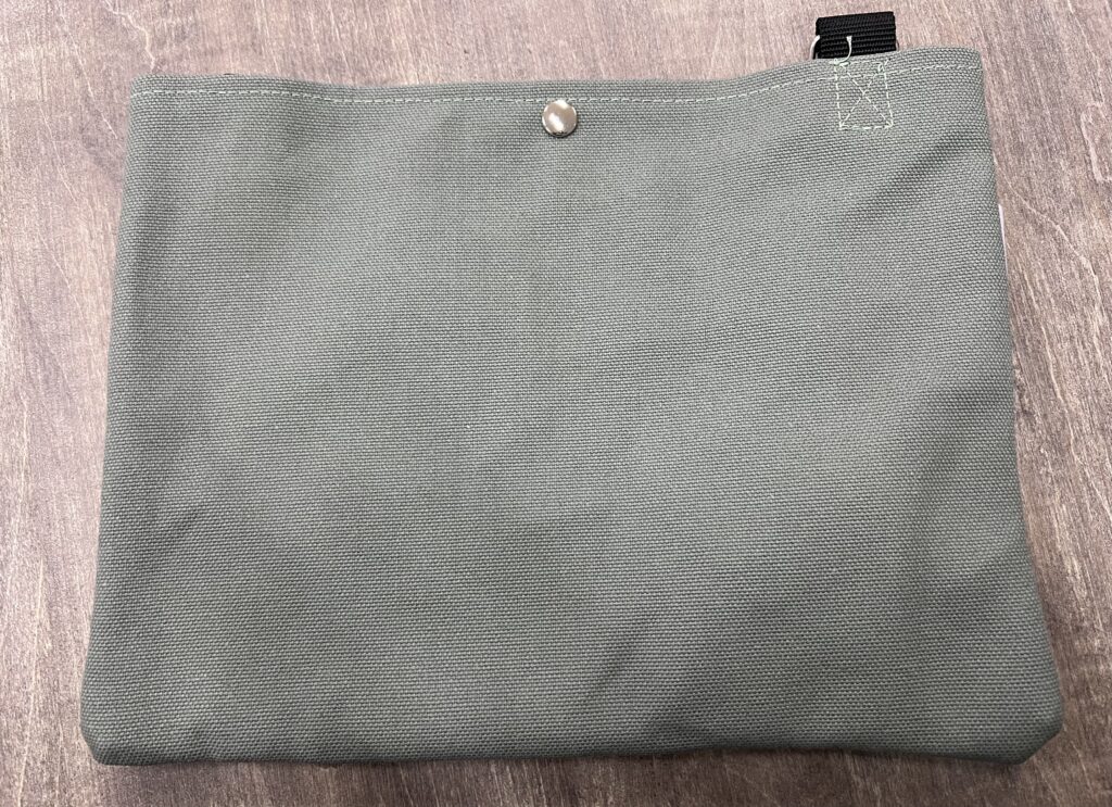軽く糊がついた弱撥水タイプの帆布製サコッシュは大きいサイズで、内側には便利なポケット付。
