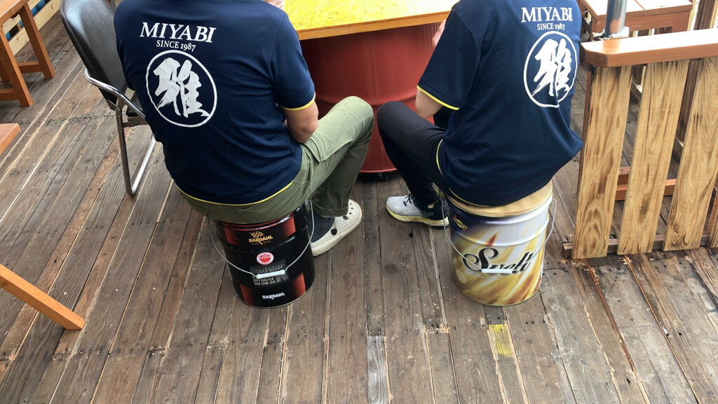 さらに目を引くのが、オイル缶でできたイス!!!