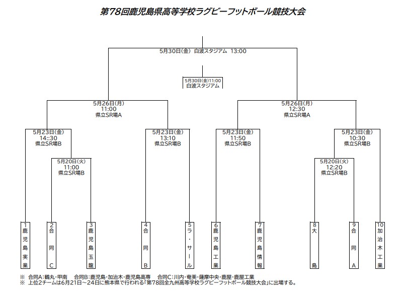 5月20日(火)に開幕する県高校総体・ラグビーフットボール競技の組み合わせが決まりました。